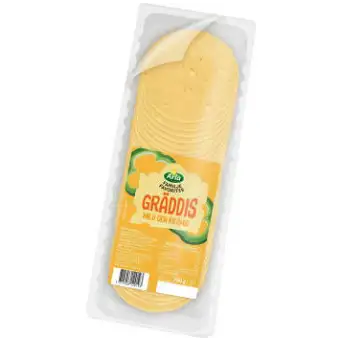 Information vom Lieferanten: Arla Familien favoriten – milde und leckere Käse für die ganze Familie. Unser runder, vorgeschnittener Gräddis-Käse mit 30% Fettgehalt hat eine cremige Konsistenz und einen cremigen Geschmack. Runde, köstliche Scheiben, die endlich perfekt auf Ihre runden Brötchen passen! Perfekt für eine etwas lustigere Zwischenmahlzeit: Nehmen Sie eine runde Brotscheibe, eine Scheibe Gräddis, ein paar Gurkenscheiben und einen halben Paprikaring. Voilà, das fröhliche-Gesicht-Brot ist fertig! Gräddis wird in Vium, Dänemark, aus Milch von dänischen Arla-Höfen hergestellt.
