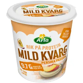 Milder und cremiger laktosefreier Quark mit Pfirsich und Maracuja. Arla® Milder Quark Pfirsich & Passion enthält keinen Zuckerzusatz und einen natürlich hohen Proteingehalt – eine ausgezeichnete Wahl für Sie mit einem aktiven Lebensstil. Kvarg periska & passion ist ein guter Snack, perfekt in Verbindung mit Bewegung, ein guter Start in den Tag und eine gesunde Wahl. Genießen Sie Quark mit Arla®-Geschmack pur oder mit Nüssen, Früchten oder frischen Beeren. Alle Quarksorten von Arla® sind laktosefrei. 1 000 gr.