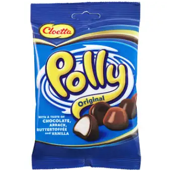 Polly Original von Cloetta sind wunderbar zähe Schaumoberteile, die mit einem herrlichen Schokoladengeschmack überzogen sind. Die hellen Polly-Kugeln haben zwei Geschmacksrichtungen, Arrak und Butterkaramell, während die dunklen Kugeln nach Vanille schmecken. Die Kombination aus einem verführerisch harten Inneren mit dem Geschmack von Schokolade macht die Bonbontüte so lecker, dass es unmöglich ist, einfach eine zu nehmen. Der Beutel enthält 200 g.