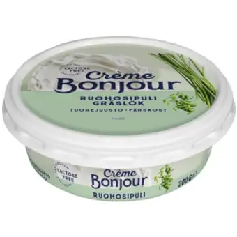 Crème Bonjour Chives ist ein cremiger Frischkäse mit einem milden und frischen Schnittlauchgeschmack. Hervorragend geeignet für das Käsetablett, auf dem Sandwich, als Muntermacher oder beim Kochen. Kann sowohl in warmen als auch in kalten Gerichten verwendet werden. Laktosefrei.