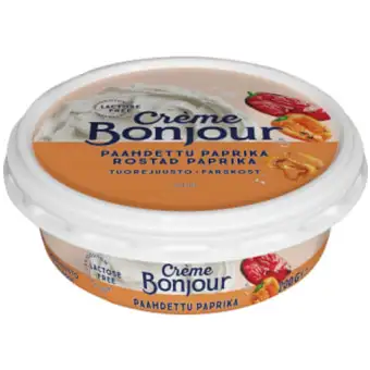 Information von leverantörCrème Bonjour geröstet Paprika ist en cremig Frischkäse mit rik och kryddig Geschmack von Páprika. Utmärkt zu ostbrickan, auf mackan, i plockmat oder i matlagning. Kann användas i både varma und kalla rätter. Laktosefrei.