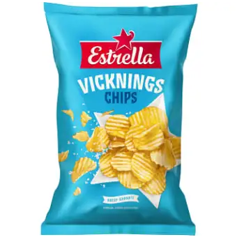 Räfflade potatischips, leicht gesalzene. perfekt att dippa! Vickningschips kommt ur ordet vickning, wie ist ein gammalt ord för zu äta tillsammans auf kvällen innan gästerna går hem efter bjudningen.