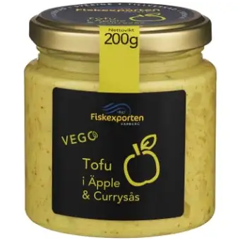Zutaten: TOFU 45% (SOJA, vatten, Mineralsalz (Magnesiumchlorid)), Wasser, Rapsöl, Apfelsaftkonzentrat, gelb lök, Stabilisierungsmittel (acetylerat distärkelsefosfat, Xanthangummi, Guarkernmehl), Zucker, Essig, modifiziert Stärke, Lauch, Apfelstücke, Salz, Curry, Essig, Senfkernen, Kurkuma, Zwiebel, Säure (Milchsäure, Zitronensäure), Konservierungsmittel (Kaliumsorbat, Natriumbensoat).