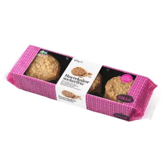 Zutaten: Margarine (pflanzlich Fett (Palm, Shea, Palmkern, Raps, Kokos), Wasser, salt, Emulgierungsmittel: Mono- und Diglyceride av Fettsäuren; arom, ANTIOXIDATIONSMITTEL: Zitronensäure), HAFERbrei 25%, Süßungsmittel: Maltite (enthalten eine Phenylalaninquelle)*, WEIZENmehl, HAFERFASER, Backpulver: Ammoniumcarbonat – Natriumcarbonate; Salz, AROMA. * übertrieben Konsumtion kan ha abführend Einfluss kann enthalten Spuren von EI, NÜSSE, SOJAbohnen.