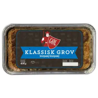 GÖL Classic grob gehackte Leberpastete ist eine gebackene dänische Spezialität. Mit seinem guten und ausgewogenen Geschmack darf es auf dem Brot nicht fehlen und ist eine natürliche Eisenquelle. Für zusätzlichen Geschmack mit Essiggurken oder einem Stück Apfel toppen. GØL grobe Leberpastete wird in der kleinen Manufaktur in Åbenrå hergestellt, wir tun dies seit 1922. Lieferung in Folienform mit Deckel. Guten Appetit.
