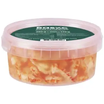 Zutaten: KREBSSCHWÄNZE* (Procambarus Krebs), Wasser, Salz, Zucker, Konservierungsmittel (E211, E202), säureregulierendes Mittel (E330, E331), Dillaroma. *Gefangen i sötvatten mit tinor und fällor i Kina.