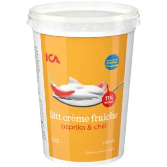 ‚Creme fraiche leicht Paprika & Chili 11% 500 ml von ICA‘ ist eine exquisite und leichtere Variante von Creme fraiche, die durch die würzige Kombination von Paprika und Chili eine besondere Geschmacksnote erhält. In dieser großzügigen 500 ml-Verpackung vereint sich die cremige Leichtigkeit mit einer intensiven Würze, um Ihre kulinarischen Kreationen zu verfeinern. ICA, als angesehenes Markenunternehmen, legt großen Wert auf Qualität und Frische. Die Herstellung dieser Creme fraiche erfolgt sorgfältig, um den hohen Standards gerecht zu werden, die mit dem Namen ICA verbunden sind. Die leichtere Variante mit einem Fettgehalt von 11% macht sie zu einer bewussteren Wahl für alle, die den vollen Geschmack von Paprika und Chili erleben möchten, ohne auf Leichtigkeit zu verzichten. Die einzigartige Kombination von Paprika und Chili verleiht dieser Creme fraiche eine würzige und leicht scharfe Note. Ob als Dip für Gemüse, als Zutat in Saucen oder als Verfeinerung für verschiedenste Gerichte – diese Creme fraiche eignet sich vielseitig und bringt eine aromatische Würze in Ihre Küche. Die großzügige 500 ml-Verpackung bietet nicht nur ausreichend Vorrat, sondern ermöglicht auch eine flexible Anwendung je nach Bedarf. Die cremige Textur und die würzige Geschmacksnote machen sie zu einer idealen Ergänzung für viele Gerichte, sei es beim Kochen, Grillen oder als Dip für Snacks. ICA engagiert sich nicht nur für den Geschmack, sondern auch für Umweltfreundlichkeit. Die Verpackung wird sorgfältig gestaltet, um den ökologischen Fußabdruck zu minimieren. Die großzügige Größe der Verpackung trägt dazu bei, den Verpackungsaufwand zu reduzieren und somit Ressourcen zu schonen. Diese Creme fraiche bietet nicht nur eine geschmackliche Bereicherung, sondern auch ernährungsphysiologische Vorteile. Creme fraiche ist vielseitig einsetzbar und kann eine gute Quelle für Fette und Geschmack in Ihrer ausgewogenen Ernährung sein. Zusammengefasst ist ‚Creme fraiche leicht Paprika & Chili 11% 500 ml von ICA‘ nicht nur eine Creme fraiche, sondern ein geschmackliches Erlebnis, das Leichtigkeit mit intensiver Würze vereint. Mit ihrer großzügigen Verpackung und den vielseitigen Anwendungsmöglichkeiten ist sie eine ideale Wahl für alle, die ihre Gerichte mit einer pikanten Note verfeinern möchten.