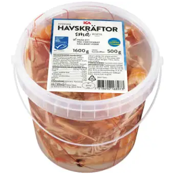 Zutaten: Kaisergranat* (Nephrops norvegicus), Wasser, Salz, Dillaroma, Säureregulator (E330), Konservierungsmittel (E211, E202). * Gefangen mit Schleppnetzen im Nordostatlantik, Fangzone 27. llla Skagerrak Kattegatt.