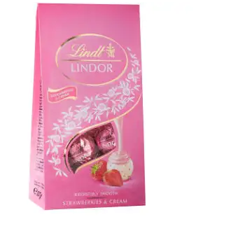 Genießen Sie unwiderstehlich cremiges LINDOR von Lindt! Die zarte Hülle der Pralinen aus feinster weißer Lindt Schokolade mit Erdbeere umschließt eine zart-cremige Cremefüllung. Ein Schokoladen-Meisterwerk, kreiert von Lindt’s Chocolatiers. Nachhaltig angebaute Kakaobohnen durch das Lindt & Sprüngli Farming Program – in Zusammenarbeit mit den Bauern und ihren lokalen Gemeinschaften.