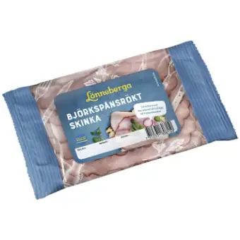 Schinken* (97%) (Ganzmuskel), Salz, ANTIOXIDATIONSMITTEL (E325, E301), MALTODEXTRIN (majs), Traubenzucker (Mais), Stabilisierungsmittel (E451), Kräuterextrakt (Muskatnuss, Schwarzer Pfeffer), Konservierungsmittel (E250). *Geboren, gezüchtet und geschlachtet i Schweden.