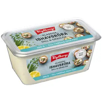 Rapsöl, SURIMI (zermahlenes Fischfleisch) 28% (FISCH, EIWEIß, vatten, Kartoffelstärke, salt, socker, KRABBENAROMA, Farbstoff (Paprikaextrakt, Karmin)), Wasser, Zwiebel, EIGELB, GARNELEN 2,8%, SENFSAMEN, Dill, Schnittlauch, Meerrettich, Zucker, Salz, weißer Pfeffer, Liebstöckel, Kräuter, Essig, Stabilisierungsmittel (Guarkernmehl, Xanthangummi), säureregulierendes Mittel (Zitronensäure), Konservierungsmittel (Natriumbensoat, Kaliumsorbat). kann enthalten Spuren von WEICHTIER.